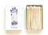 Light a summery spark with this pretty lavender matchbox! Adorned with a miniature botanical illustration of lavender sprigs on the outer lid in your choice of foil press color on a black or white box, this tiny matchbox adds the perfect touch of fresh summer sun. This match enclosure makes a wonderful gift for gardeners, farmers, chefs, foodies, florists, nature lovers, or those who simply love the smell of lavender, be it for Valentine's Day, Mother's Day, a birthday, to say thank you, or to let someone know you're thinking of them. Great for collecting, giving, having on the table at dinners, picnics, coffee table conversation, a pretty touch in the bathroom, & party favors! Place one next to your favorite candle or reading spot. Matchbox size is 2 3/16" x 1 3/8" x 3/8" and contains about (16) 2" long white-tipped safety matches. A standard striker strip is located on the right hand side. Matchbox is made in the USA and embossed by Studio Portmanteau in Grants Pass, Oregon.